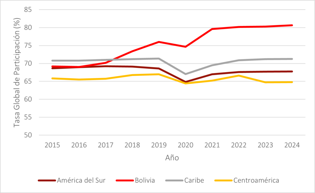 Evolución de la Tasa Global de Participación en Bolivia y la Región (2015–2024)
